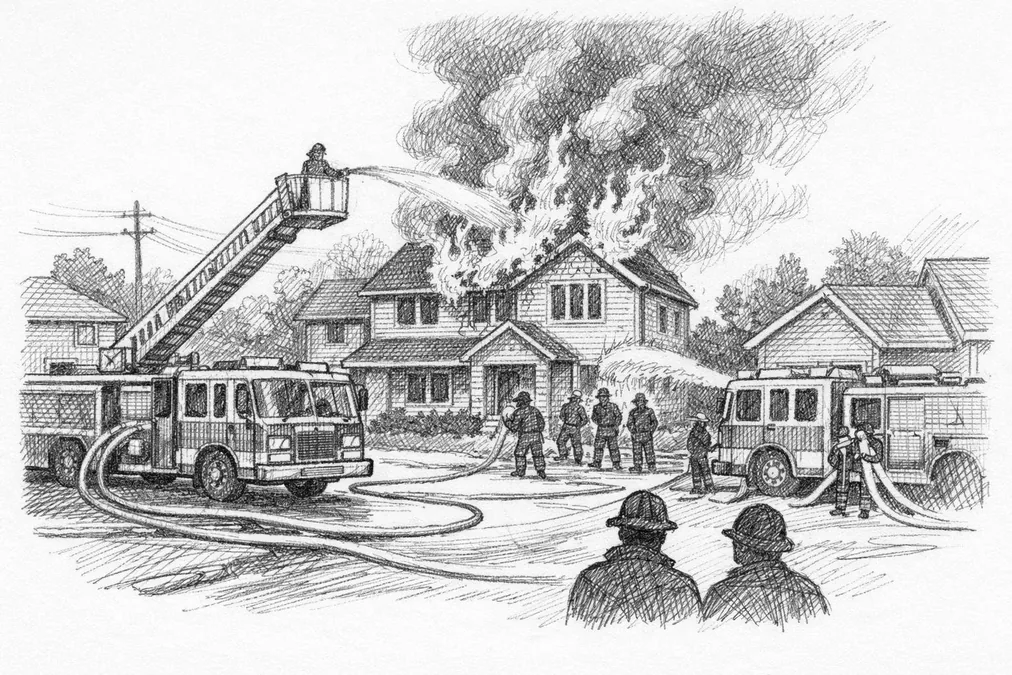 Brannen startet i to bolighus torsdag kveld. Brannvesenet rykket ut med betydelige ressurser – syv brannbiler og 25 mannskaper ble sendt til stedet, ifølge ABC Nyheter.
